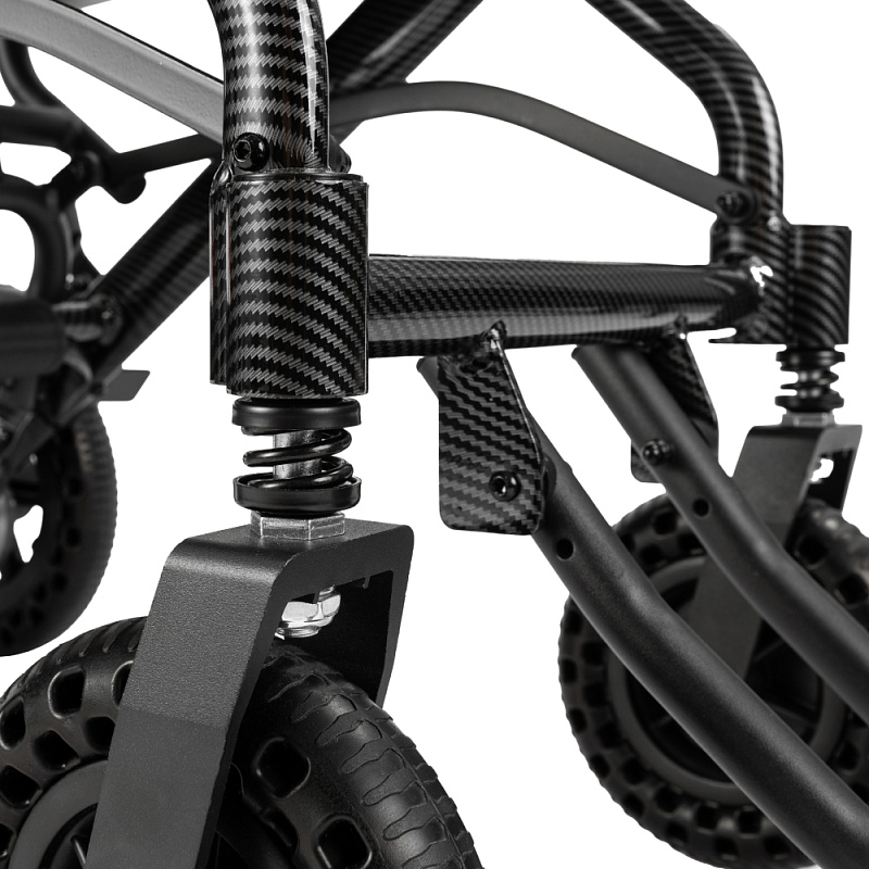 Литые шины и бесщеточные двигатели обеспечивают плавный ход, защиту от проколов и проходимость по поверхностям с легким бездорожьем.