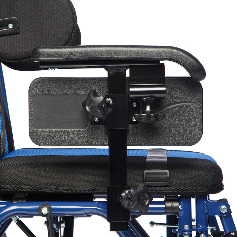 Кресло-коляска инвалидная управляемая сопровождающим лицом, детская Ortonica Olvia 400 предназначена для передвижения детей-инвалидов и детей с ДЦП с помощью сопровождающего лица. Кресло-коляска имеет большое количество регулировок. В первую очередь – это настройки для правильной посадки ребенка и снижения нагрузки на спину. Для удобства сопровождающего лица ручки коляски оснащены рычагами плавной регулировки угла наклона спинки и сиденья, а также системой торможения. Кресло-коляска имеет необходимые поддержки и фиксаторы тела ребенка. В комплекте с коляской идут съемный столик с антиспастической ручкой и съемный капюшон с прозрачной вставкой. Столик незаменим для приема пищи и тонкой моторной деятельности, в том числе он обеспечивает поддержку верхней части туловища, а антиспастическая ручка способствует снятию повышенного тонуса мышц ребенка. Капюшон защищает ребенка от воздействия солнечных лучей и окружающей среды.
