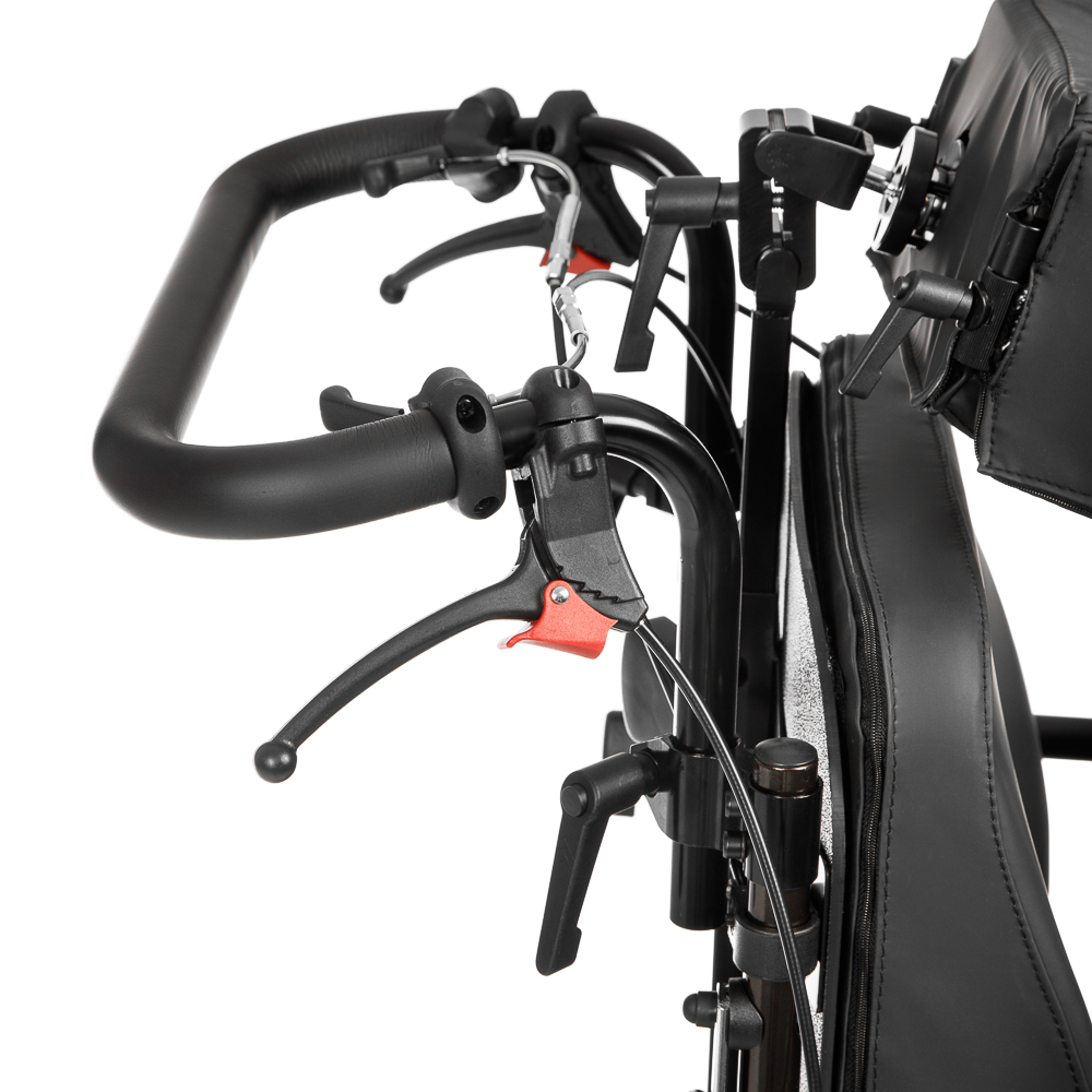 - Ручки для сопровождающего лица, регулируемые по высоте, оснащены системой торможения