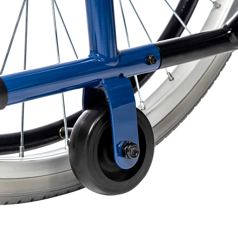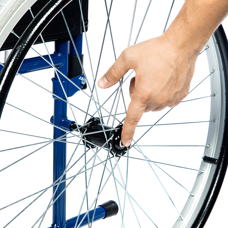 Транзитные колеса уменьшают габаритную ширину, позволяя сопровождающему лицу перемещать коляску в узких коридорах, лифтах, ванных комнатах и других тесных помещениях.